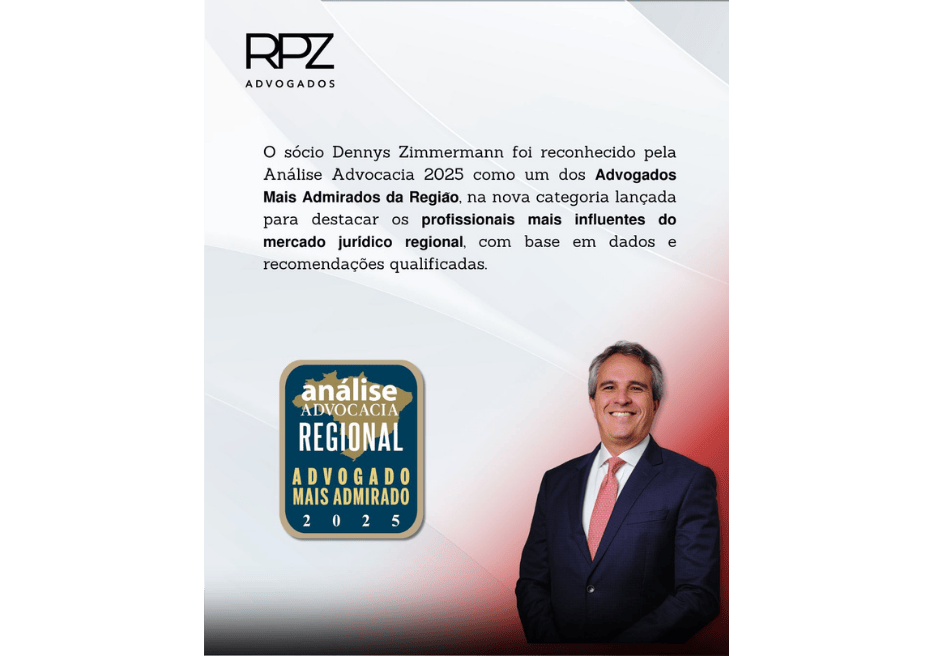 É com grande satisfação que anunciamos o reconhecimento do sócio Dennys Zimmermann como um dos Advogados Mais Admirados da Advocacia Regional 2025, na nova categoria lançada pela Análise Advocacia em seu tradicional ranking.