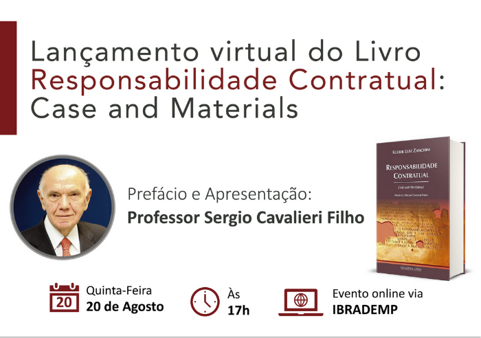 Nosso consultor, Professor Sergio Cavalieri Filho, participará na próxima quinta-feira, dia 20 de Agosto, às 17 horas, do lançamento virtual do Livro Responsabilidade Contratual: Case and Materials.