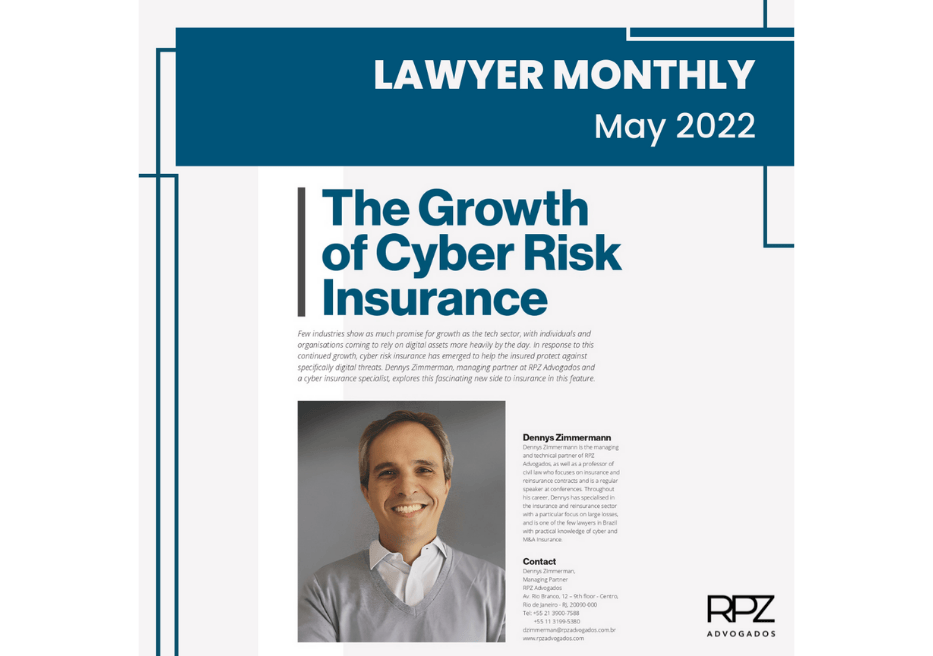Nosso sócio, Dennys Zimmerman, foi selecionado para uma entrevista sobre o crescimento do Cyber Insurance Brasil pela prestigiosa revista Lawyer Monthly.