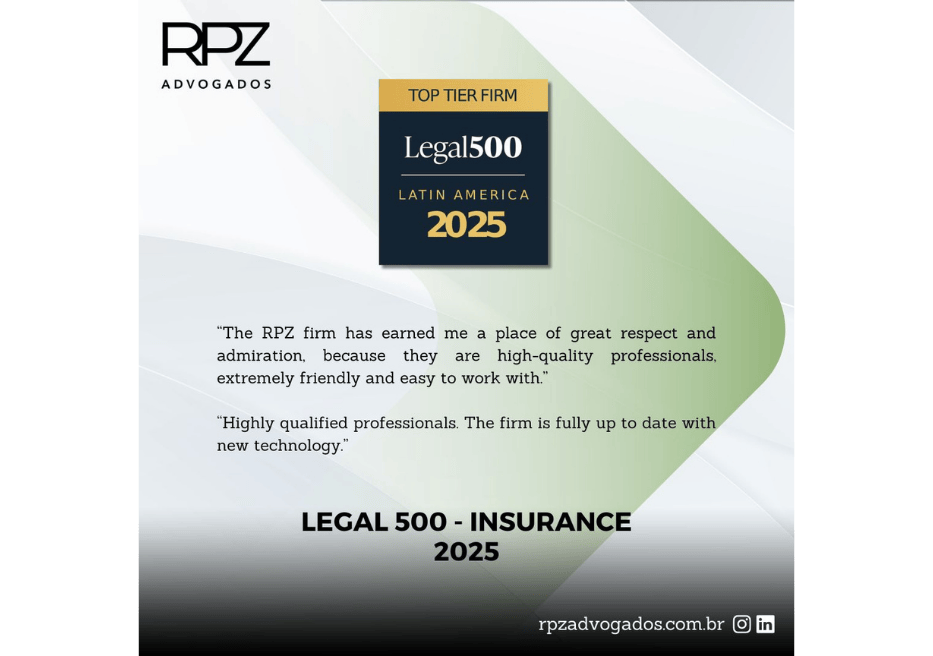 Temos o imenso prazer de anunciar que o RPZ Advogados foi mais uma vez ranqueado no prestigiado diretório Legal 500, na categoria Insurance - 2025! Este reconhecimento é um reflexo do nosso compromisso inabalável com a excelência e a inovação no campo jurídico.