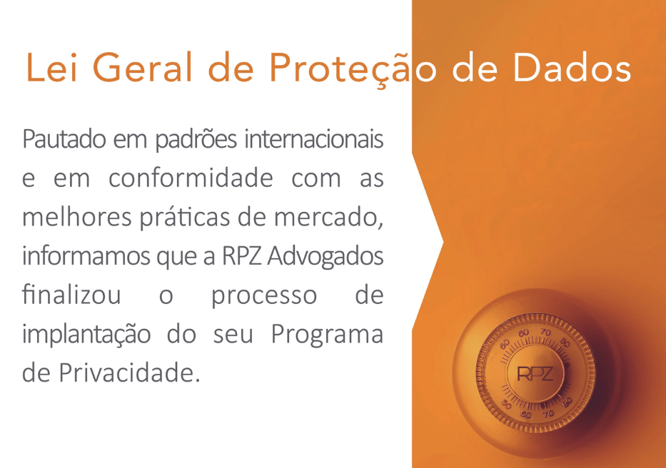 Visando ao respeito aos nossos clientes, à conformidade com a Lei Geral de Proteção de Dados – LGPD (Lei nº 13.709/2018), e às melhores práticas do mercado, a RPZ Advogados informa que finalizou o processo de implantação do seu Programa de Privacidade, pautado em padrões internacionais e com o auxílio de consultoria especializada.